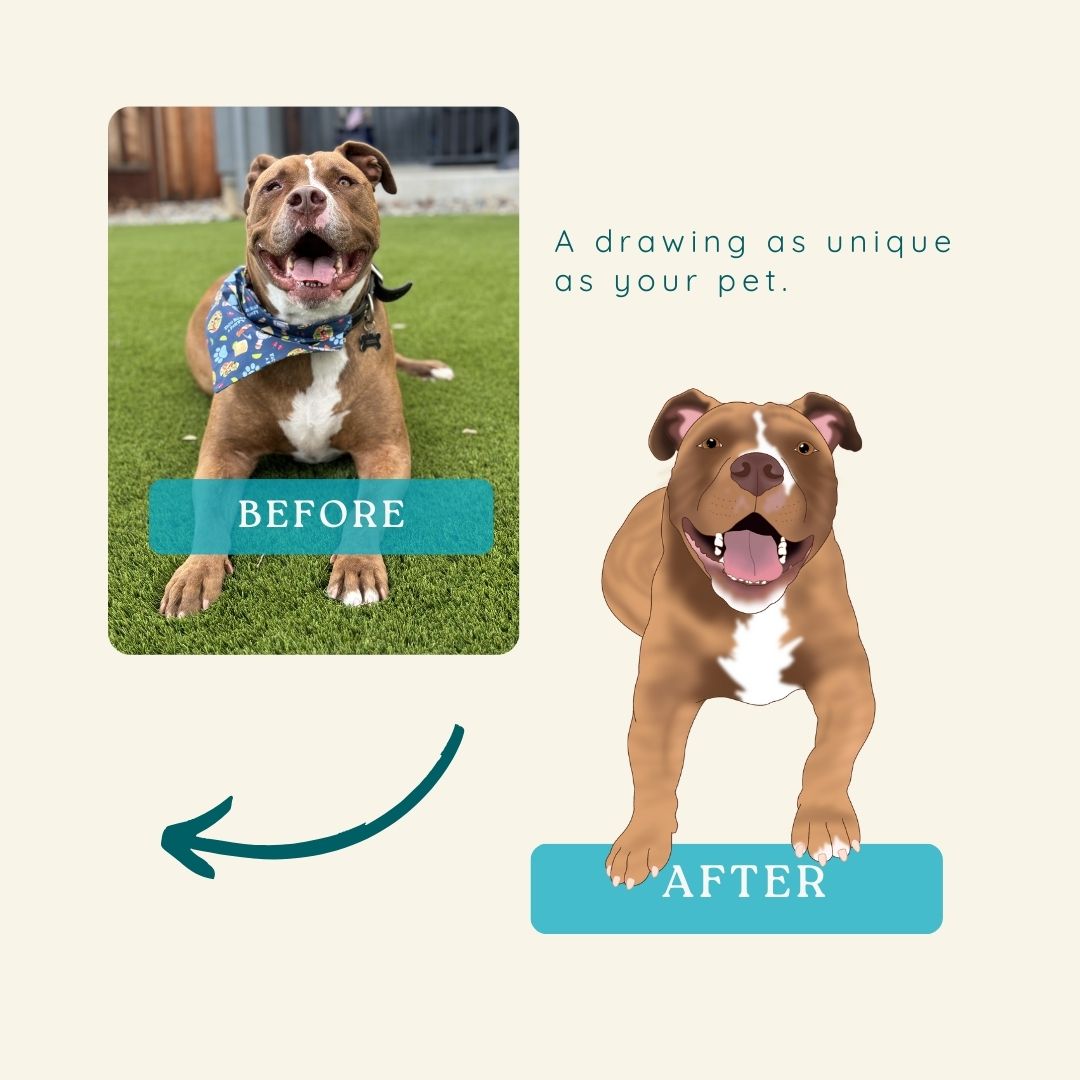 Celebrate your furry friend with our Custom Pet Drawing! 🎨 Get a drawing that reflects the unique charm of your mutt, mix, or any beloved pet. No more generic looks.