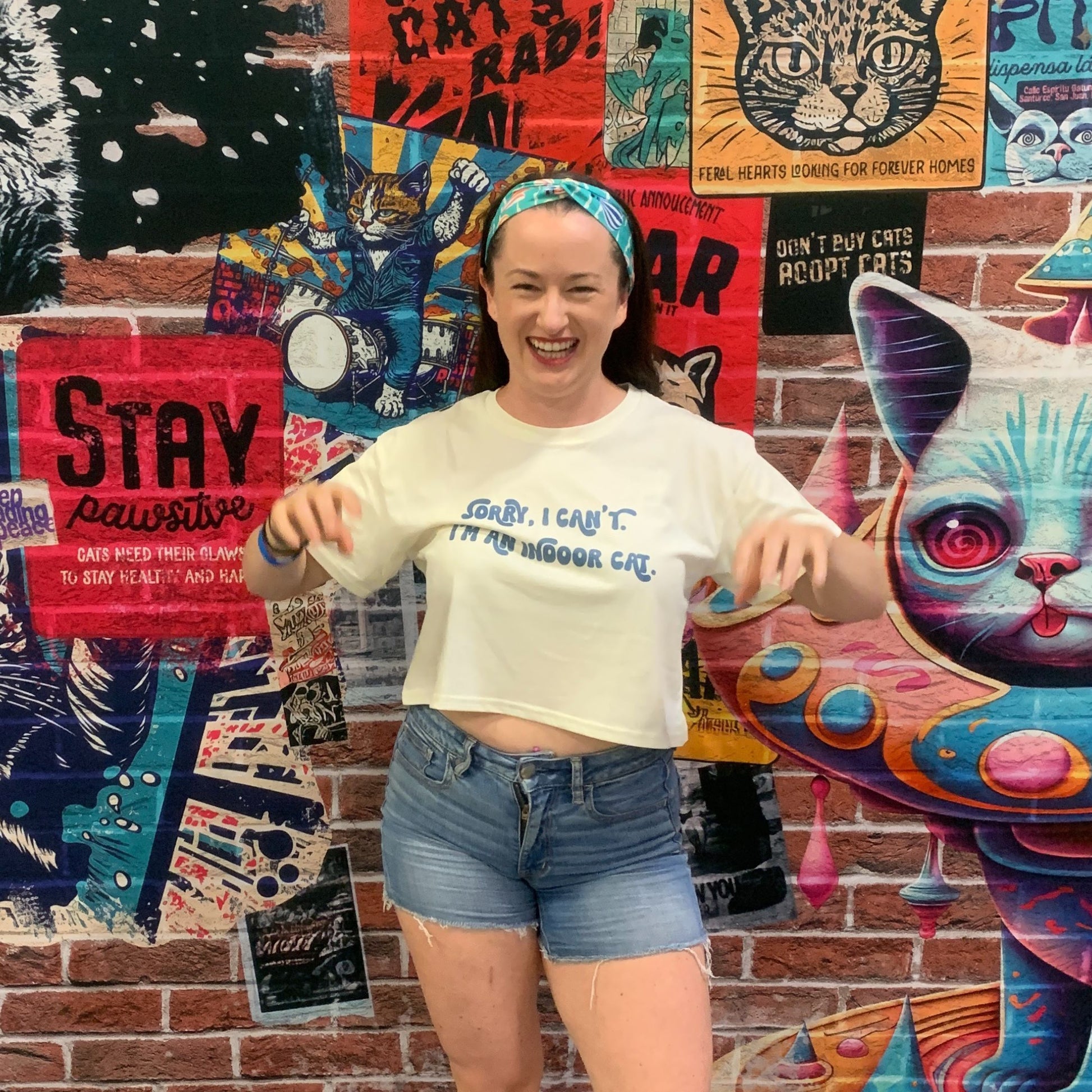 Let your Cattitude speak volumes with our "Sorry I Can't. I'm an Indoor Cat." Cotton Crop. This trendy and playful crop top is designed for those who prefer the comforts of their indoor sanctuary over the hustle and bustle of the outside world. Crafted from high-quality cotton, this crop top feels purr-fectly soft against your skin. Pair it with your favorite high-waisted jeans or leggings for a look that's as cozy as it is chic.
