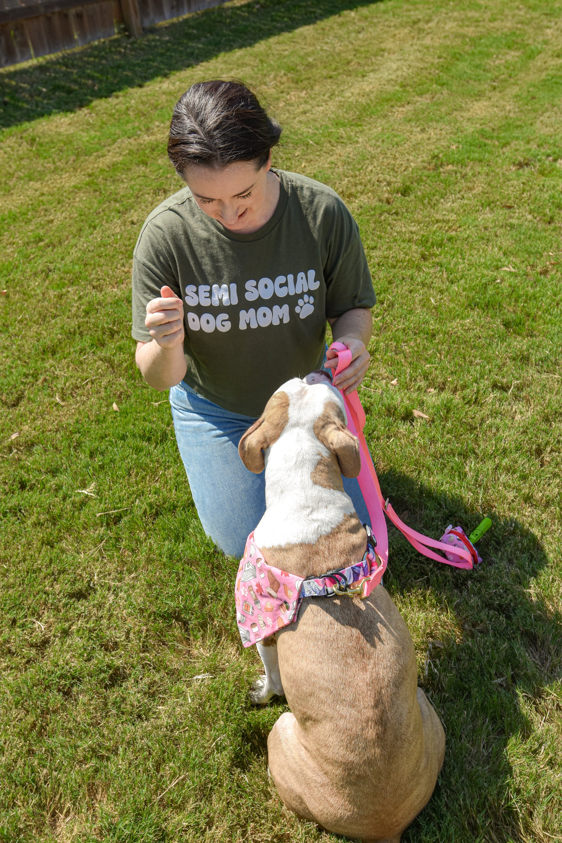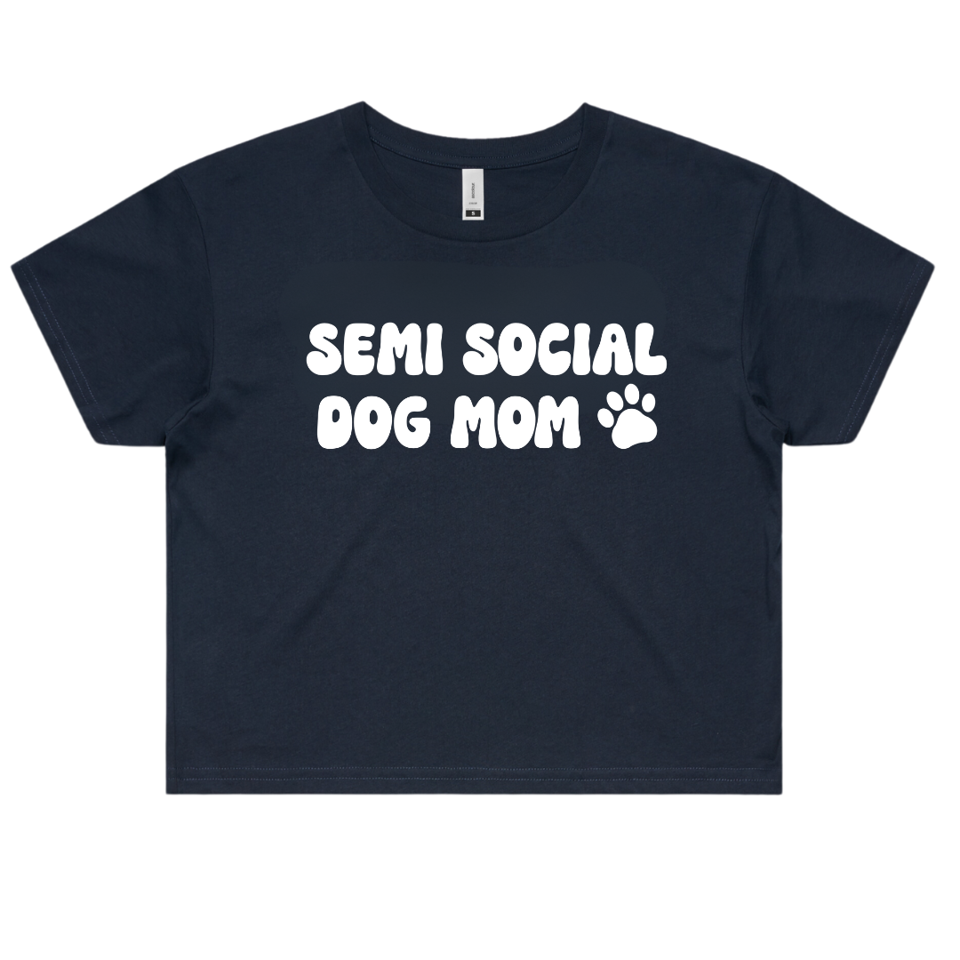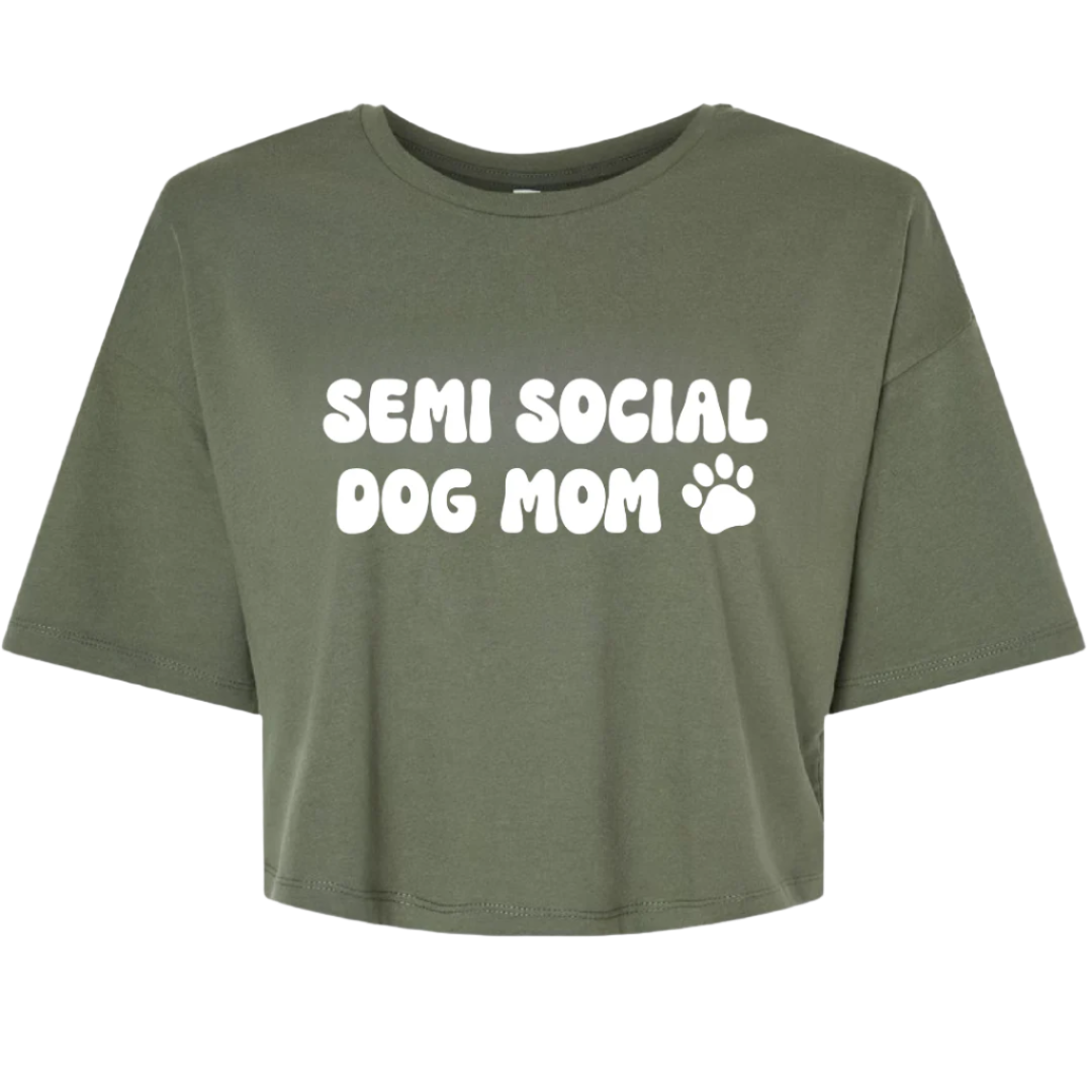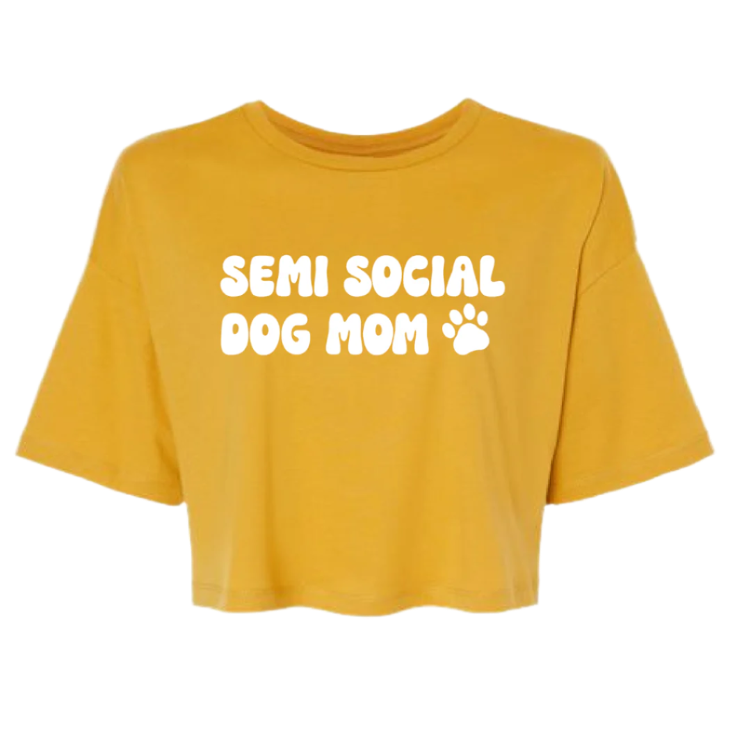 Sometimes social, always stylish! Our "Semi Social Dog Mom" shirt is perfect for the pet parent who likes her social life with a side of solitude. As perfect for leisurely strolls as it is for cozy coffeeshops, this shirt effortlessly blends style and dog devotion to keep you looking great whether you're socializing or relaxing with your furry friend. A must-have for any dog mom who values flexibility in her social calendar!