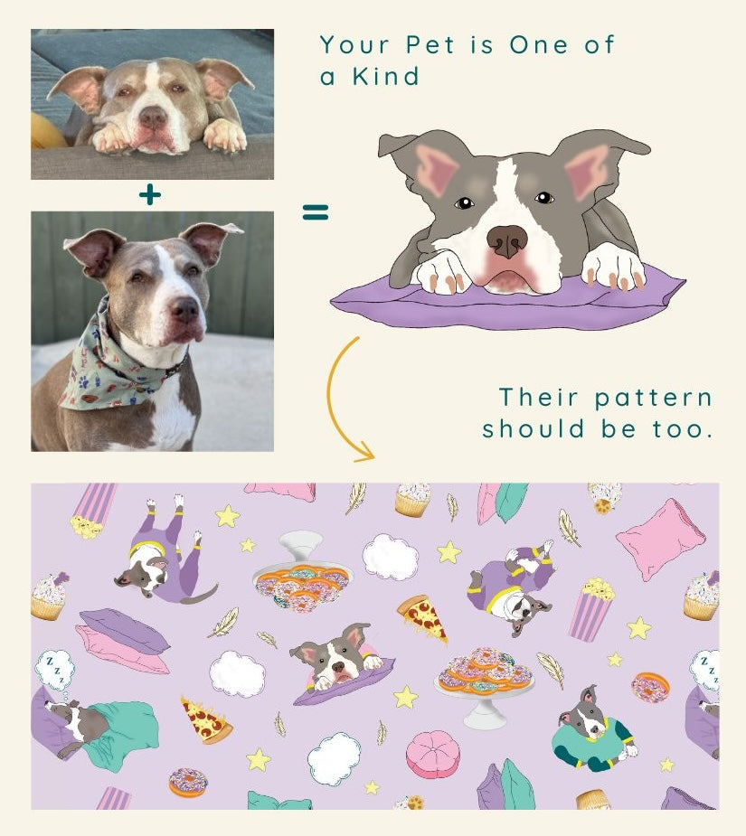 Celebrate your furry friend with our Custom Pet Patterns! 🎨 We specialize in capturing the unique charm of your mutt, mix, or any beloved pet. No more generic looks—get a custom designed pet pattern that truly reflects you and your pets unbreakable bond!