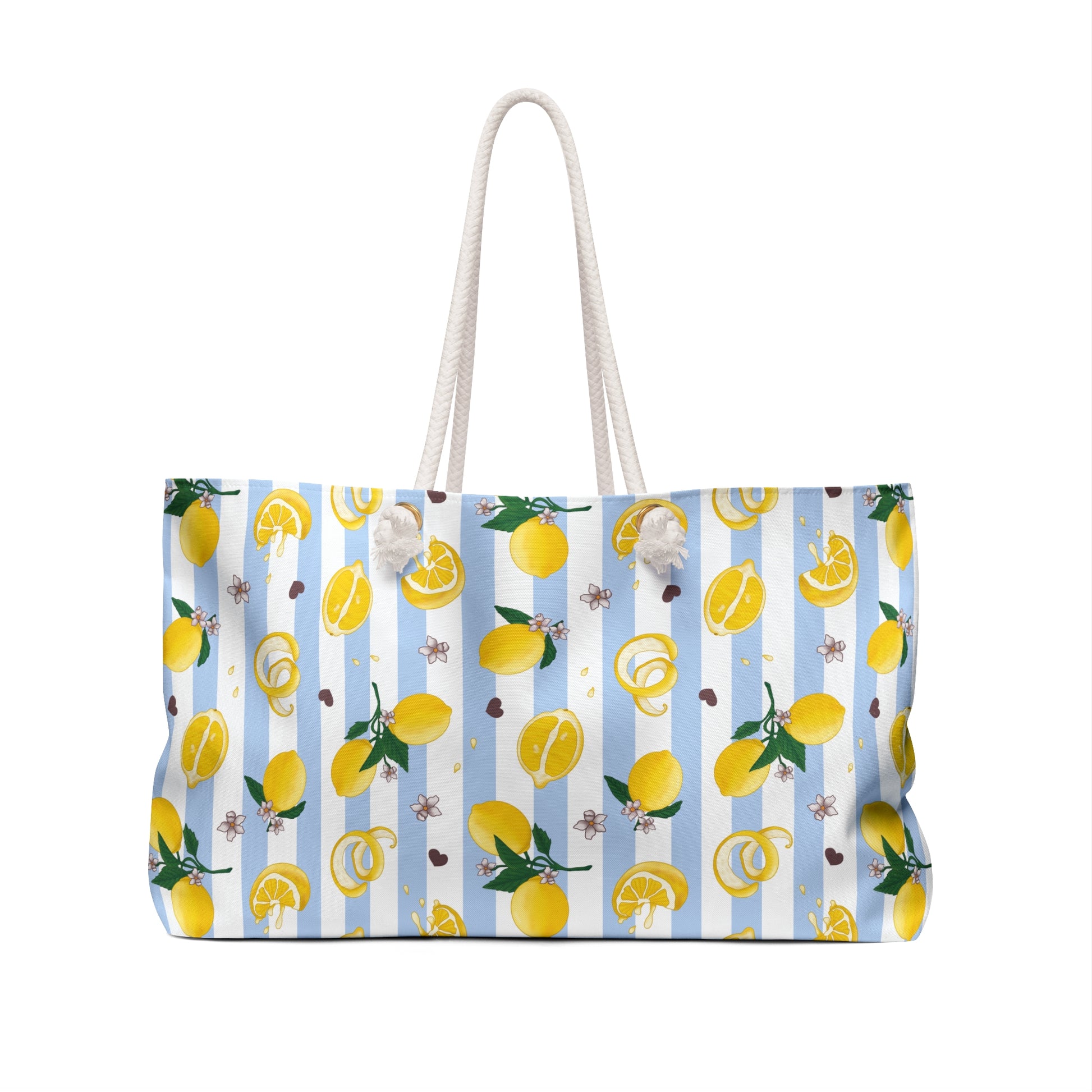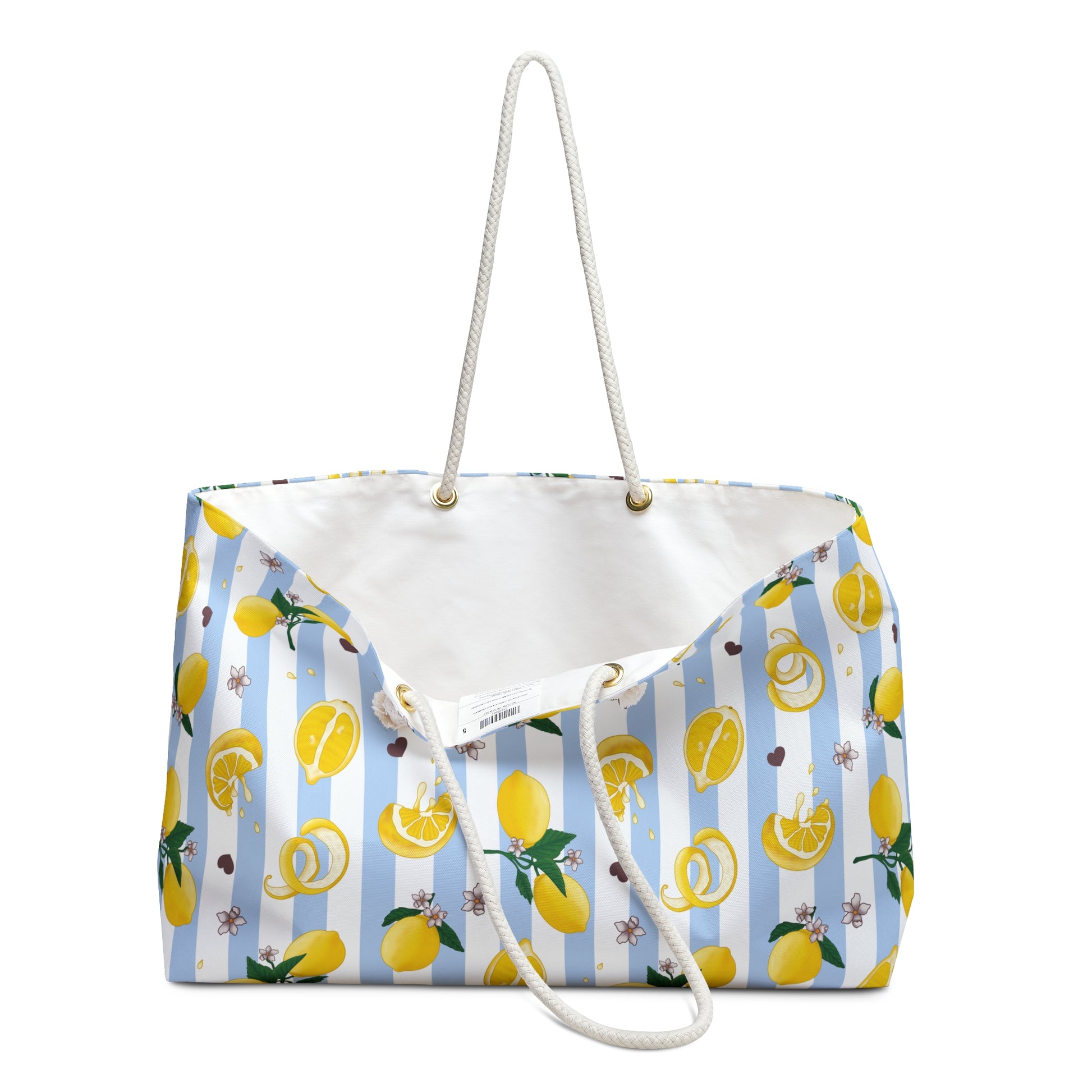 Tudo Beleza Lemon Print Weekender Bag - Perfect for Summer Getaways & Beach Trips