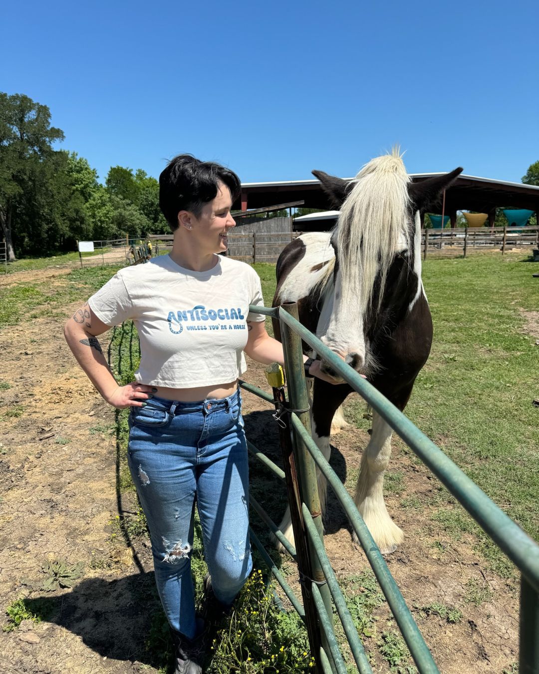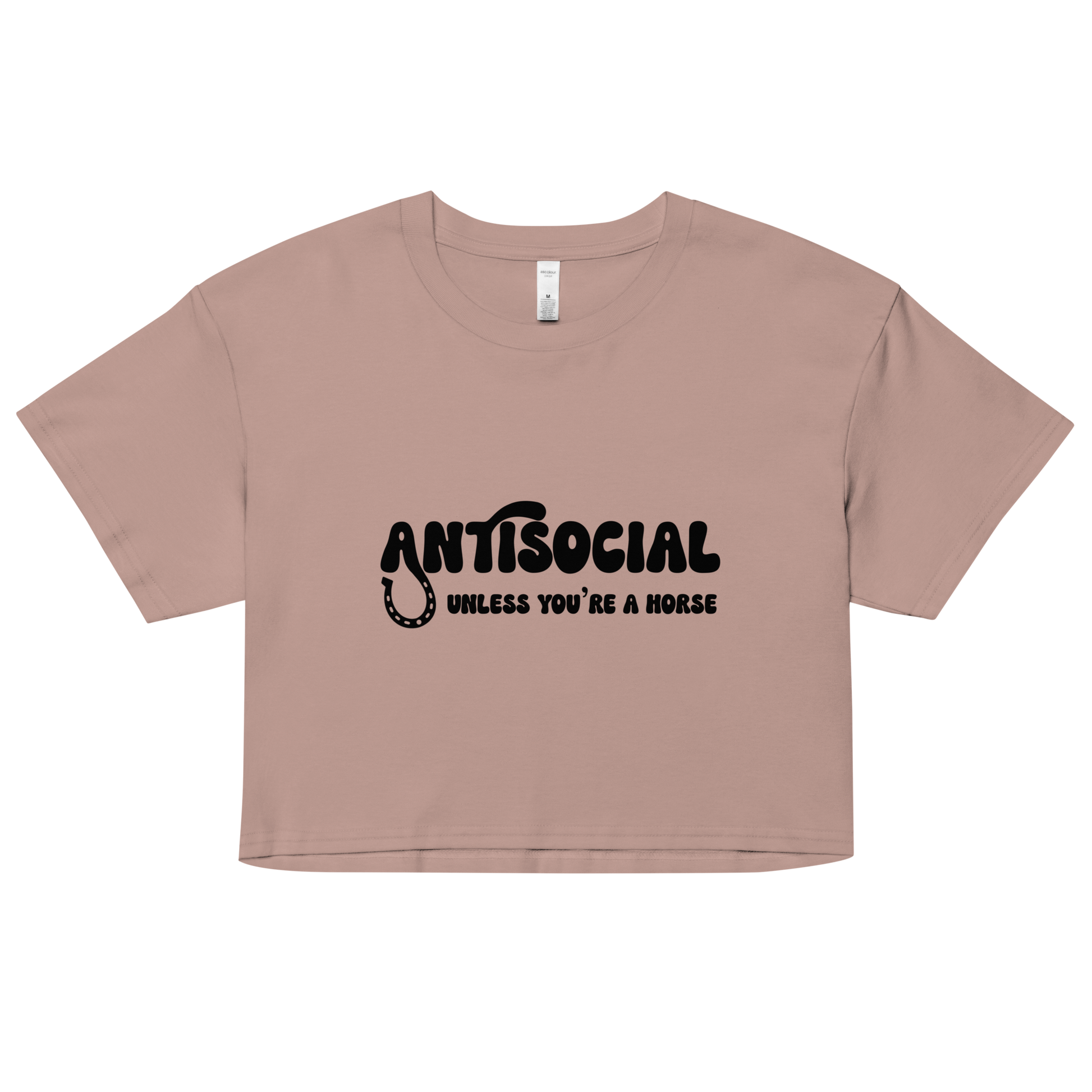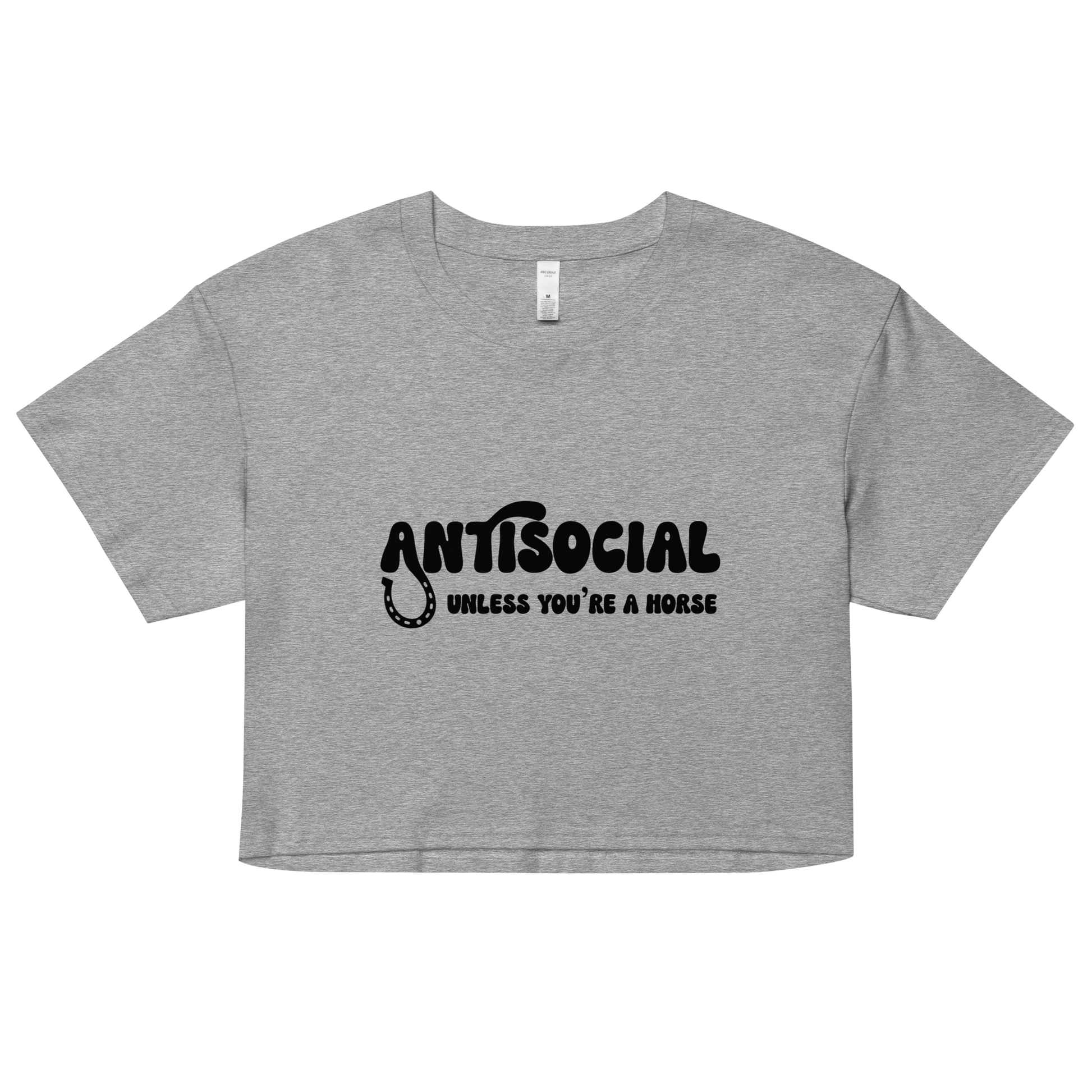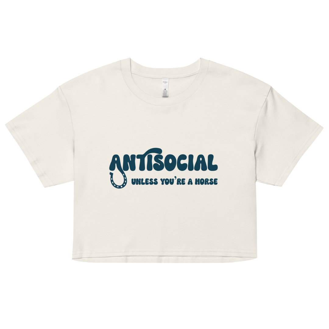 Ride in style with our "Antisocial Unless You're A Horse" Crop! Perfect for horse lovers who appreciate a touch of sass. Embrace your equine-loving, antisocial side with this fun and witty shirt!