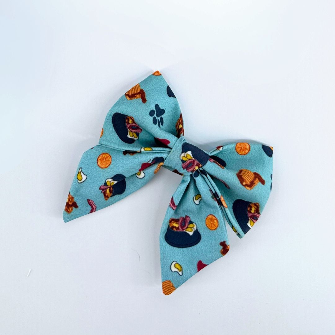 Be the talk of your next brunch with Brunchin' - Sailor and Regular. This unique bow tie is the perfect accessory for any brunch lover. Stand out at the table and impress the gals with your impeccable style. Best dressed, and always ready to brunch.